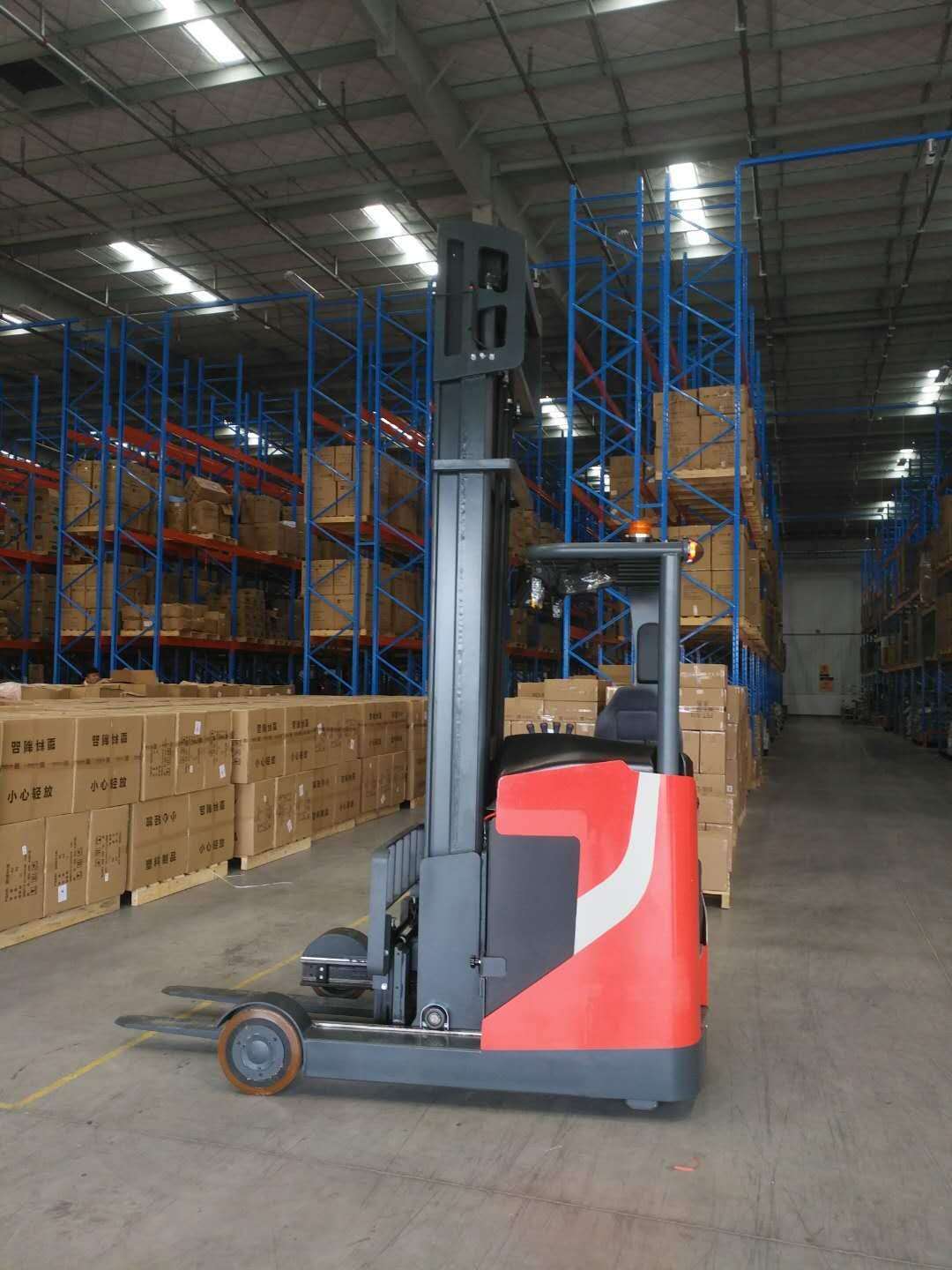 3.前移式叉車堆貨時,門架伸出后,再提升貨物,卸貨時,降低貨物縮回門架,方可行駛。
